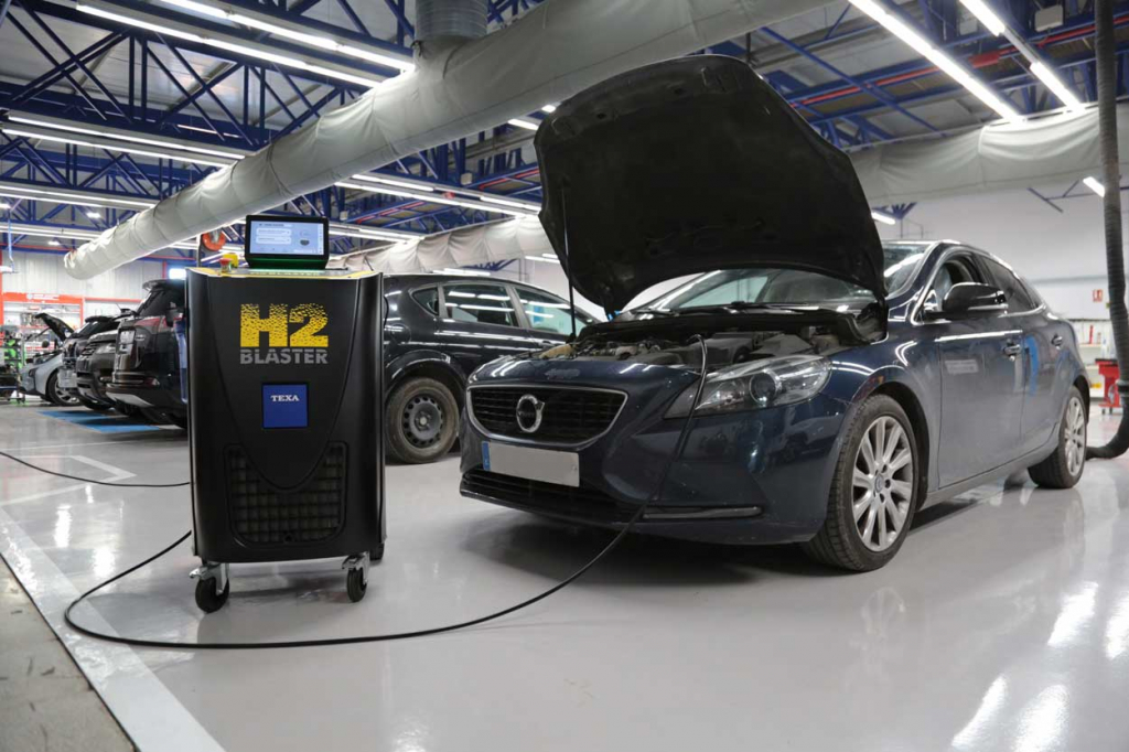 En TEXA disponen de la descarbonizadora H2 BLASTER, que incorpora hidrógeno a la admisión para conseguir aumentar la temperatura de combustión y, con ello, quemar las partículas adheridas en los conductos, denominadas vulgarmente como “carbonillas”.