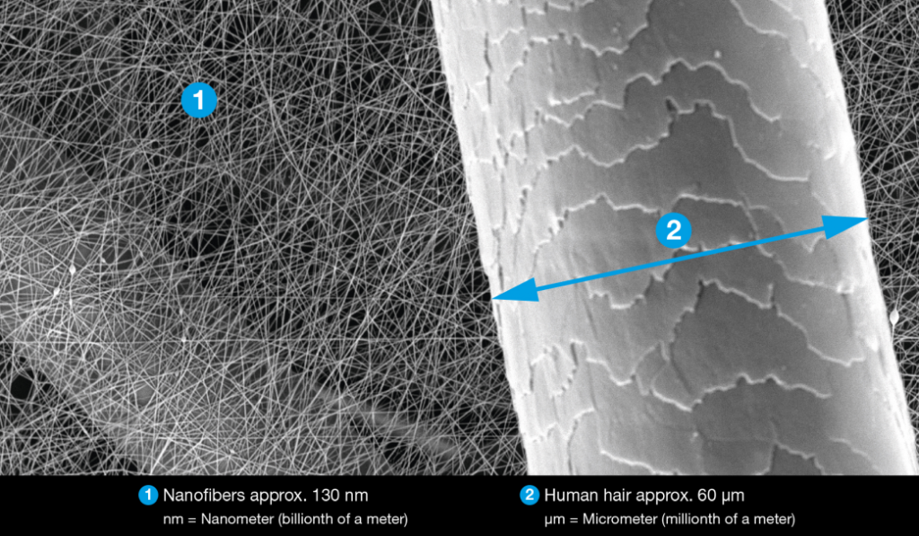 Esto significa que, además de las partículas PM10 y PM2,5, este nuevo medio filtrante puede eliminar el 90% de la clase PM1, aún más fina, es decir, partículas con un diámetro aerodinámico inferior a 1 micrómetro (0,0001 cm).