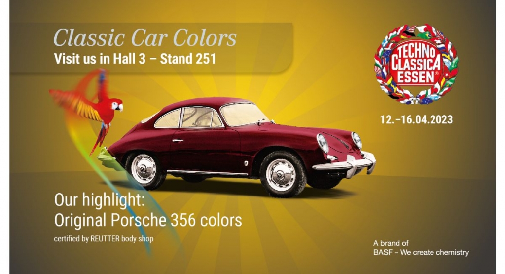 En Techno Classica, Essen, Alemania, que tendrá lugar del 12 al 16 de abril de 2023, Glasurit Classic Car Colors presentará los colores originales del Porsche 356 certificados por el taller de carrocería REUTTER, que van desde el strawberry red al speedster blue o fish silver. Hasta el momento, se han certificado 40 de un total de 59 colores. Además de explorar los colores, los visitantes pueden obtener más información sobre la base de datos de colores de Glasurit, la red de talleres de carrocería especializados y el manual de Glasurit en el stand 3.251 del pabellón 3.