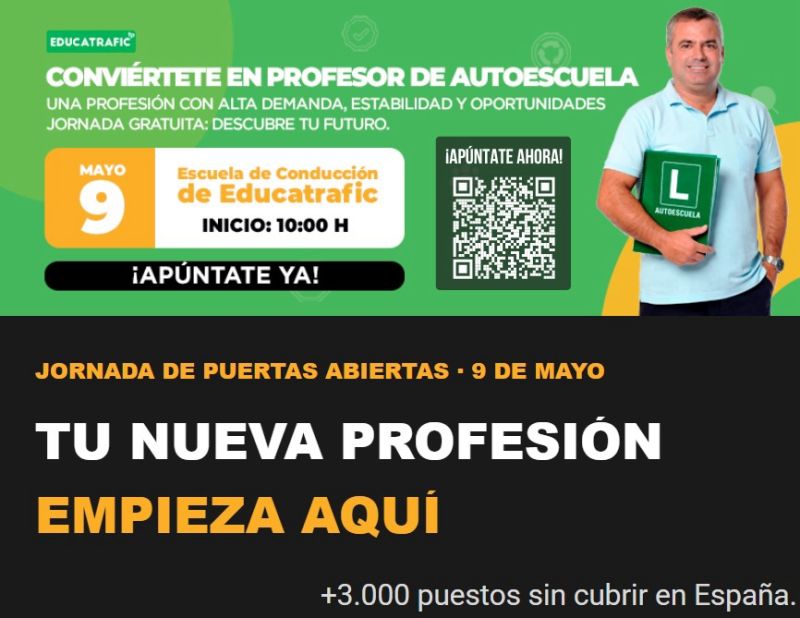 La escuela de conducción Educatrafic te invita el próximo 9 de mayo a conocer la profesión de conductor de autoescuela