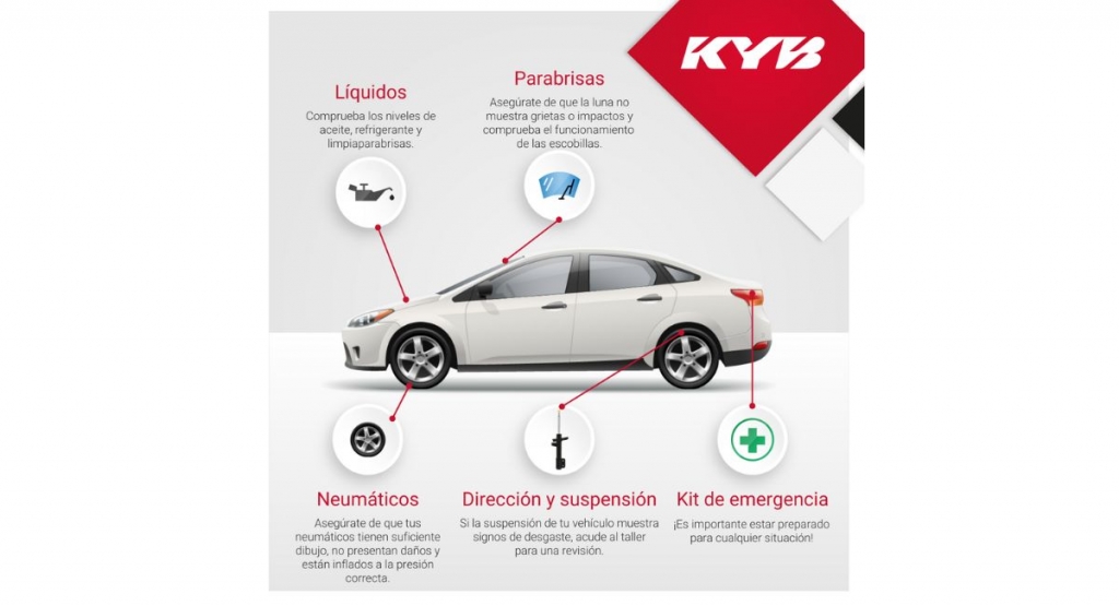 Como parte de la preparación veraniega del vehículo, llévelo a un taller para que le hagan unas revisiones más detalladas. El técnico se centrará en estos puntos: los amortiguadores necesitan una inspección visual para asegurarse de que no hay daños ni en el vástago del pistón, ni en el cuerpo ni en los soportes de montaje; y buscar fugas de aceite evidentes. Si los amortiguadores han recorrido más de 80.000 km deben sustituirse, como pareja de ejes, para restablecer las prestaciones del vehículo a las previstas por el fabricante. Los muelles helicoidales deben revisarse en busca de grietas y roturas. Las rótulas y los cojinetes deben comprobarse para asegurarse de que la goma no está deteriorada y de que no hay un movimiento excesivo.