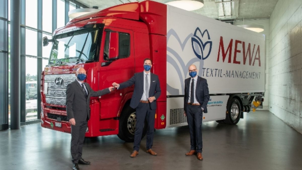 MEWA asume nuevamente un rol pionero en el ámbito de la sostenibilidad y la ecología, siendo una de las veinte empresas seleccionadas en toda Europa, y la primera en Alemania, que cuenta para su servicio diario con uno de los primeros camiones de hidrógeno del mundo. El fabricante de automóviles Hyundai acaba de entregar las llaves del primer camión de hidrógeno “Xcient Fuel Cell”. Desde finales de abril circula por las carreteras de